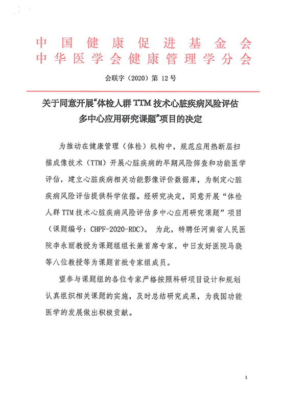 體檢人群TTM技術心臟疾病風險評估多中心應用研究課題項目正式啟動